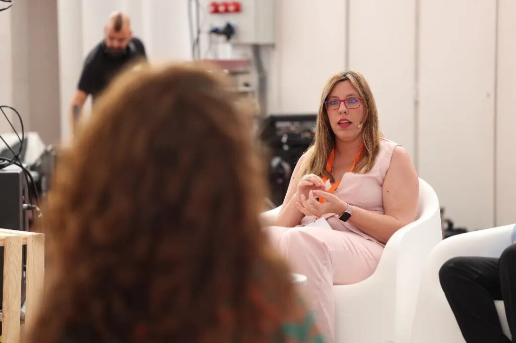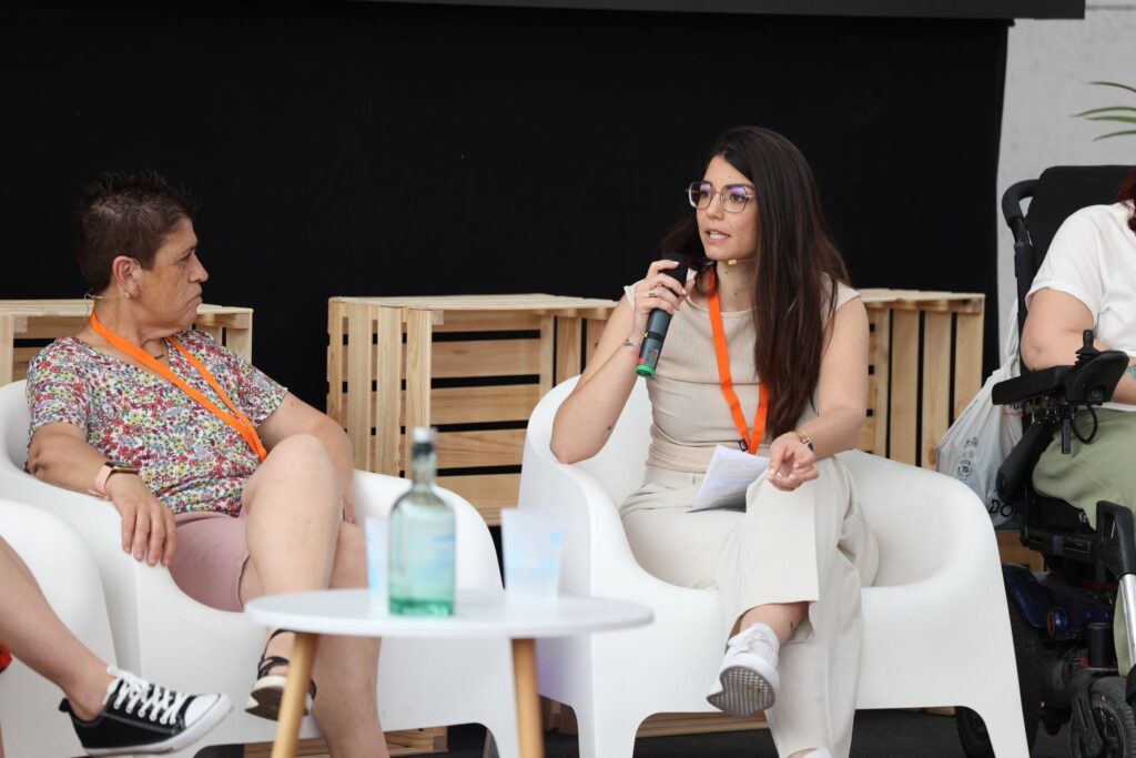 Marina Puerta, trabajadora social y técnica de nuestra entidad en Sevilla y Sofía De la Torre, usuaria del proyecto RUMBO y beneficiaria de la domotización de su vivienda en Jaén, intervinieron en la mesa redonda ‘Entidades del tercer sector como impulsoras de la innovación’. Puerta, técnica de nuestra entidad destacó que «El Proyecto Rumbo se engloba dentro de los Fondos Next Generation. Dentro de los paquetes del proyecto, en Sevilla, además de la asistencia personal, hemos tenido la domotización de viviendas (11), siendo la provincia más numerosa en este paquete de Andalucía (27 viviendas domotizadas).