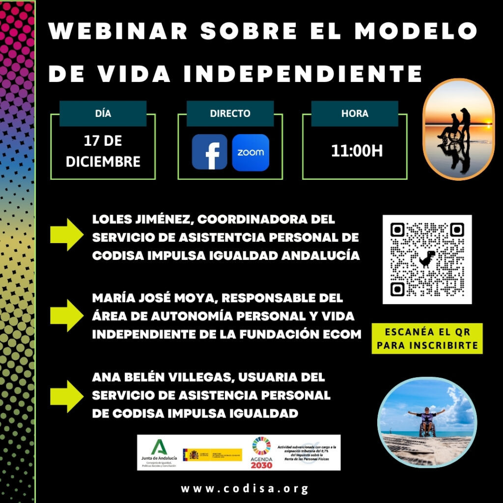 Este 17 de diciembre CODISA Impulsa Igualdad Andalucía realizó el último webinar del 2024 que cursoó sobre el Modelo de Vida Independiente a través de la Asistencia Personal. Los inscritos obtuvieron un certificado propio de participación, además de poder escuchar y preguntar a los ponentes.